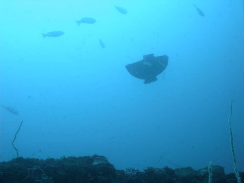 アカエイ体長50cmほど。沖の根でクリーニング中。2017/5/14撮影