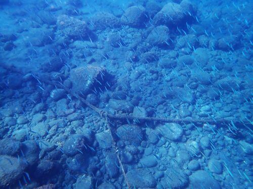 例のしましまの魚は二本目も大量に群れていたのだけど、場所が浅すぎて近寄れず、遠目からの写真となった。