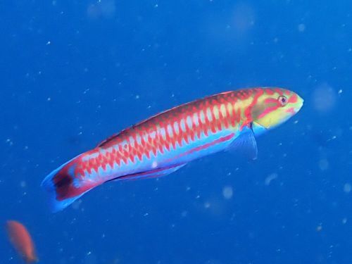 ソフトコーラルが林立しているエリアにいくと、婚姻色を含むナガハナダイの群れ、