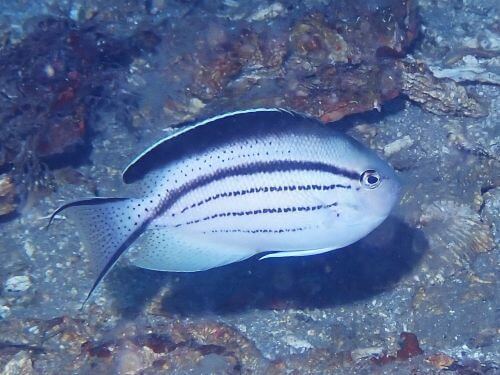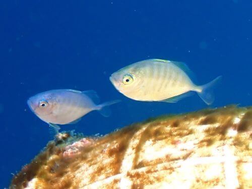 1番のブイを降りて土管に行くと、タテジマヤッコや大きくなったムレハタダイ。