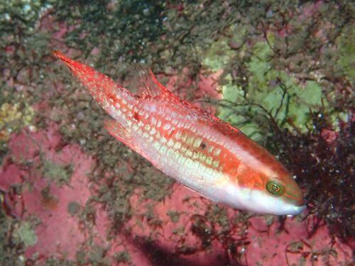 一本目に泳ぎ始めるとクロヘリイトヒキベラのオスがいた。