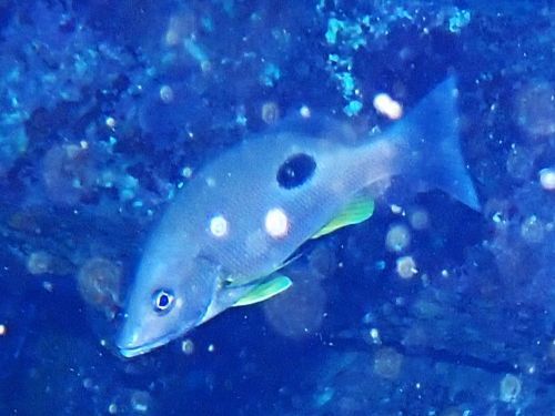 浅場には、まだ小さなクロホシイシモチの群れが、視界を遮るほどにいる。