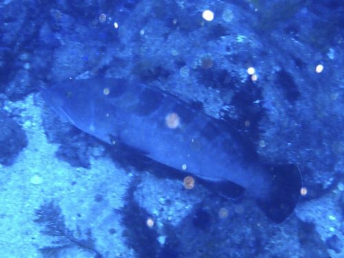 ブイを降りて、中層を東に泳いでいくと漁礁が見えてくる。