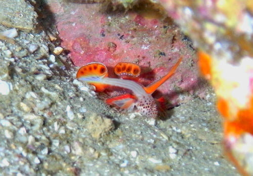 まずは岩の隙間にいた、顔の赤いイレズミハゼSP。