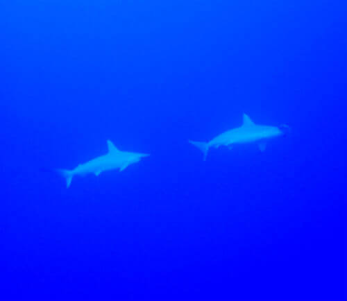 その後、2回ほど群れにあたり、安全停止中にも2頭のハンマーが通り過ぎる。