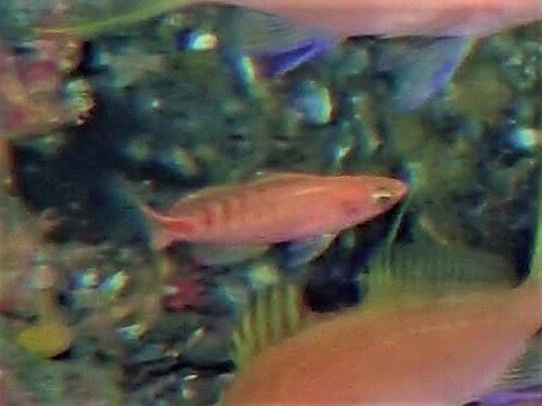 多くの根で、キンギョハナダイやサクラダイのメスが群れ、