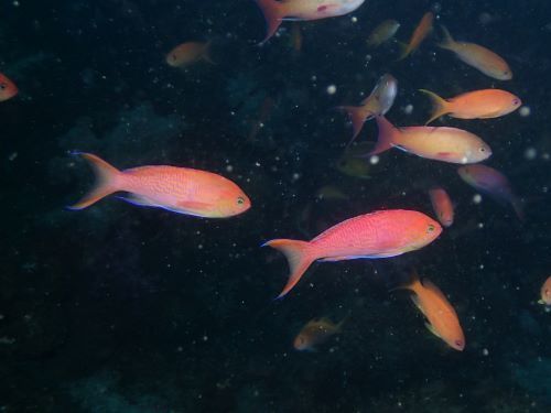 ここにはとにかく数が多くて、なんとも言えないピンクとオレンジが混ざったようなグラデーションに、背びれの折り重なった色が美しい。