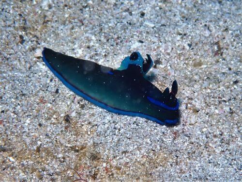 その横をのんびりとミドリリュウグウウミウシが歩いている。