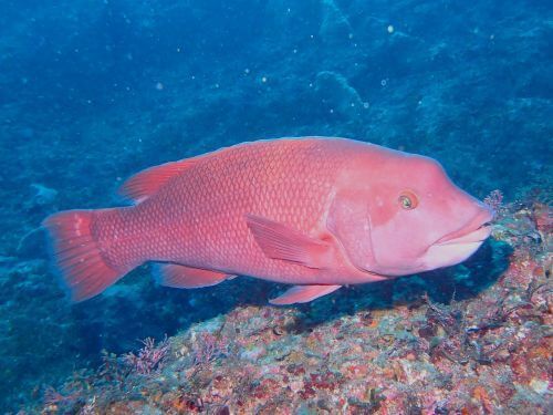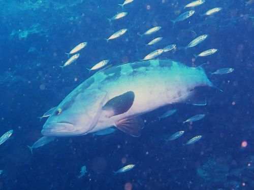 西の端に差し掛かると、小型から中型の何匹ものコブダイが現れた。
