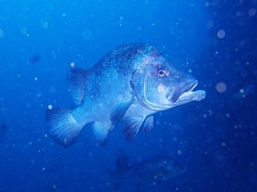 V字谷を越えた時、中層に何匹ものメーター級のクエが流れの中を、ゆっくりと尾ひれを動かしながら、その場にとどまっているのが見えた。