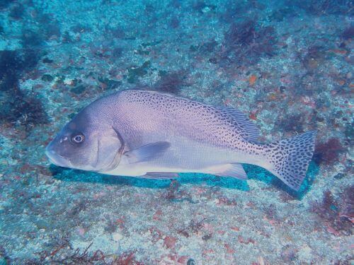 大根の東側を周ると、岩の隙間に何匹ものヒゲダイ。
