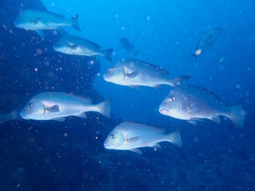 V字谷の中層では10数匹のコロダイが群れを成していた。
