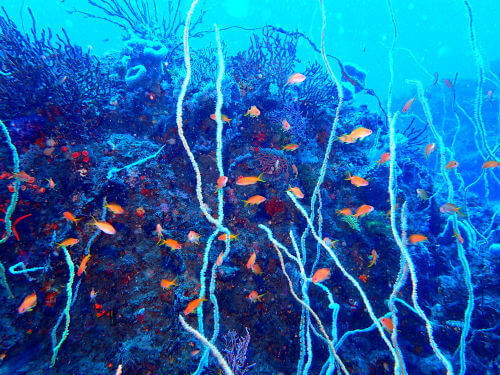 メインポイントのカジカキに到着すると、水底近くにいるダイバーがはっきり見えるほどのクリアな水!
