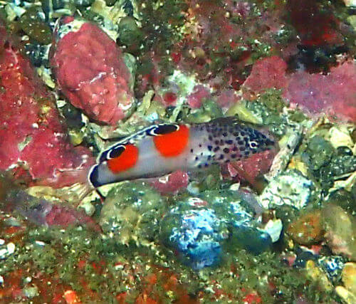 エントリーしてすぐのゴロタにはイトマンクロユリハゼとオヤビッチャの群れ、砂地には海藻のようにヒラヒラと舞うホシテンスの黒バージョン。
