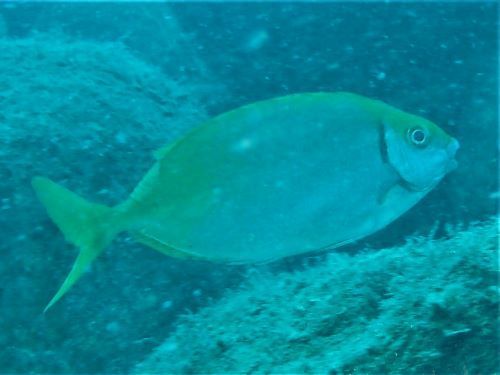 タカサゴ科季節来遊魚主に南日本以南で見られるが最近は伊豆でも普通にいる*左上の魚。下はイサキ2018/11/14撮影