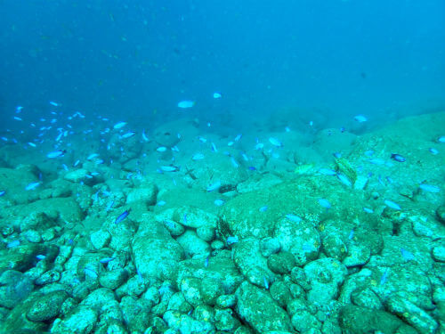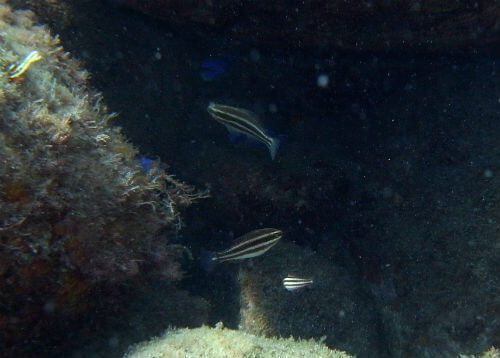 イシダイ科カゴカキダイの幼魚やソラスズメダイと群れていた2018/7/19撮影